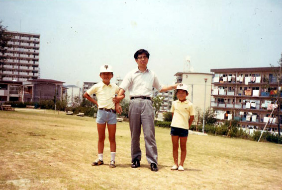 須磨ニュータウンに引っ越しをしたばかりの頃。自宅近くにあった大きな公園。芝生やグラウンドがあった。 |