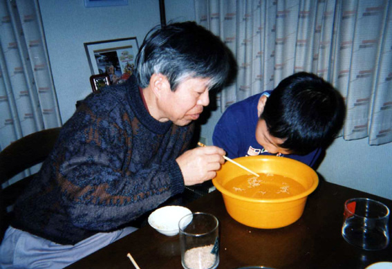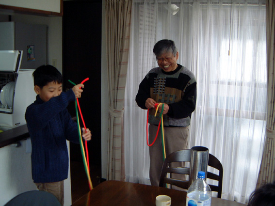 孫に自慢の技を伝授。 |