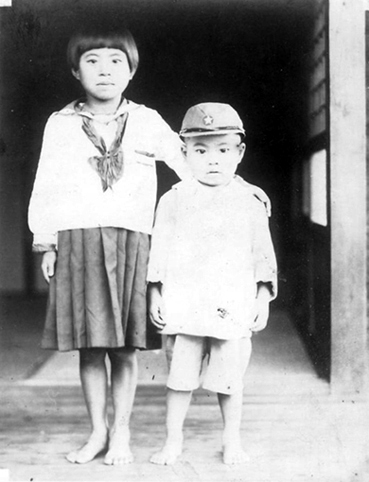 姉(左)と。おとなしい子供だった。 |