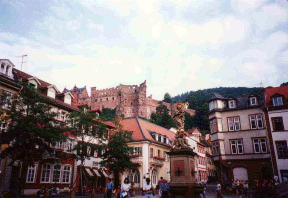 その夜はハイデルベルクに泊まる。夕食前にハイデルベルクの街を散策する。ハイデルベルク城はライン河畔の古城よりはるかに大きく、壁面しか残っていない廃城であるが、廃墟の魅力ー崩れて行くものと崩れに抗するものとの拮抗が作り出すあの廃墟の魅惑的な情趣を漂わせてネッカー河畔の小高い丘に聳えている。どこから見ても見栄えのする城で、ネッカー河にかかるカール・テオドール橋からの眺めは名高い。観光客は観光の名所を侮ってはならない。ここで記念写真をパチリ。丘を下りて落ち着いた中世的情趣を残すハイデルベルク旧市街を歩いて、ドイツで最も古いと言われるハイデルベルク大学を見る。大学はキャンパスを持たず、街の中に散在していた。私が学生の頃「ハイデルベルグの学び舎の 夢多き日の思い出を」という歌がよく歌われていたが、あれはここのことだったのかと、いくぶん青春の日を懐かしむような気持ちになる。