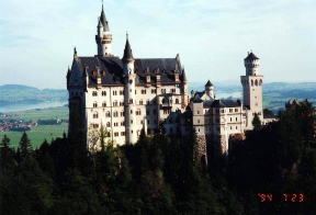 ロマンチック街道のハイライト、ルードヴィヒ二世の築いたノイシュヴァンシュタイン城は訳せば新白鳥城という意味になるらしいが、山の中腹に聳える城はその名の通りその形姿は誠に優美にして華麗、世界にこれにまさる城はあるまいと思われる。これをしもメルヘンチックと言うのであろう。城の裏側の谷間にマリエン橋というのがあり、そこからの眺めが素晴らしい。ところが帰りの土産物店で見た絵葉書の方がもっといいのだ。それはどうも航空写真のようで、いわば肉眼を超えた一種架空の視点からの眺望で、この世のものとも思えぬ美しい姿をしていた。絵葉書が現実を超えるというのはちょっと不愉快だが、一枚買った。この優美な城を見るにつけ、日本の近世大名たちが築いた城はどうしてあのように華がないのか。外観の無愛想はともかくとして内部のあの貧相なたたずまいは何ごとであろうと思わず比較してしまう。この芸術とやらに取り憑かれたルードヴィヒ二世という蕩児は凝りに凝って自分の夢の実現に17年の歳月と巨大な富を蕩尽してやまなかった。外観の優美はさることながら、内部の装飾に贅を尽くして飽くことがなかった。今も残る彼の寝室は寸分の隙間もなくきらびやかな装飾で埋め尽くして贅美の極致を現出していた。それは人間の欲望の果てしなさを具現して見せたとも言えた。このようなものに憑かれた人間が十全な生を全うできるはずがなかった。このバイエルンという小国の国王は自分の身の丈に合わない巨大な夢に挑んで破滅した。このような寝室で私なら悪夢にうなされて一夜も安眠できないであろう。観光はともかくとして、やはり住むとすれば、日本の城の薄暗い貧寒たる空間の方を選ぶかなどと、思わぬところで自分のお里を暴露してしまう。