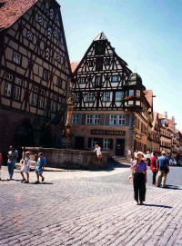 翌日ローマへの道という原義を持つロマンチック街道を下り中世の宝石箱といわれるローテンベルクを見る。歩きにくい中世の石畳の道を散策する。メルヘン仕立ての見事な色彩の家並みが美しく、家々の窓に飾られた花が鮮やかだ。ドイツ人は家を大切にし、窓は何時もピカピカに磨き上げられている。窓が汚れていると近所からクレームがつくという。ローテンブルクの家の窓枠は低く人の腰ほどの高さである。その窓枠に人々が腰を下ろして休んでいる。日本人は自分の家の窓によその人が座ったりしたらきっと怒るに違いない。ヨーロッパではどうも家の外側は自分のものではなく、社会に属するものと考えているようだ。誰が座っても怒らない。洗濯物は外に干さない。電線は地中に埋めて電柱は立てない。街の美観を作り上げるについてヨーロッパ人は実にストイックである。