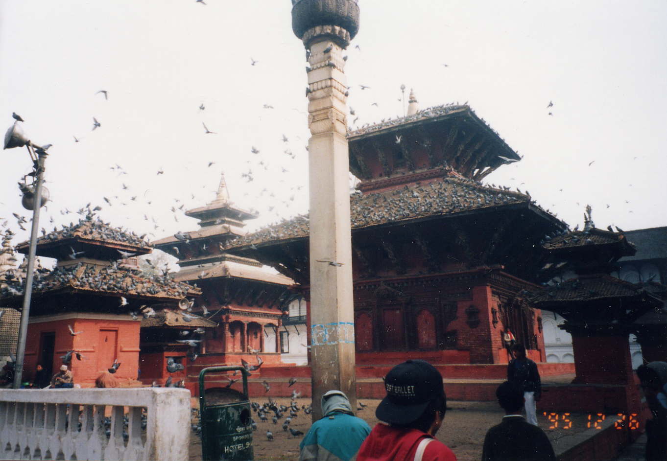 9、カトマンズ観光(写真上はカトマンズの鳩の群れる寺)(写真中はハヌマン・ドガと少年)(写真下はインドラ・チョーク)