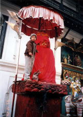 次はクマリと呼ばれる女の子を見た。クマリは生き神様で由緒ある家柄の幼女から選ばれ、初潮をみると交替するという。彼女は神だから祭りには主役を勤め、国王も彼女の前にひざまづくという。