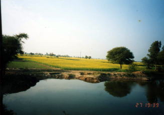 13、インドの農村(写真上は延々と続く菜の花畑)(写真下は沿道の村落)