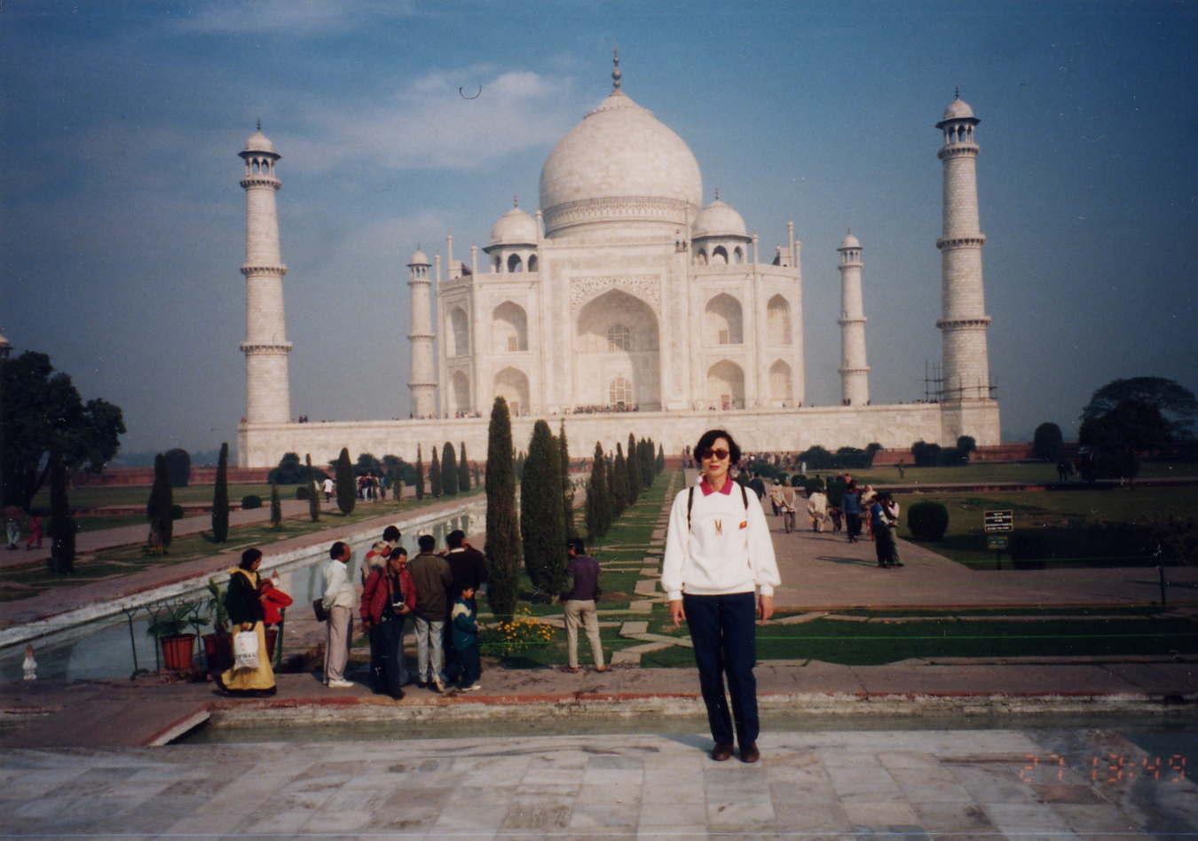 アグラと言えば、タージマハール、インド観光のハイライトである。高校の世界史の教科書を開いて見ると、ネパールは一行の記述もないが、タージマハールの写真の出ていない教科書はない。もうインドと言えば、タージマハールというくらい有名である。門を潜って写真でおなじみの建物に正対する。ほとんど完璧な美、この世ならぬたたずまいにホーっと溜め息がもれる。これは墓であるという。死後の世界という虚構に向かっての巨大なイマジネーションの集積。それが時として生きている人間の猥雑さとは無縁の純粋無垢な美を作り上げることがある。ムガール帝国第五代皇帝シャー・ジャハンが愛妃ムムターズ・マハールのために二二年の歳月をかけて建設したインド・イスラム建築の傑作である。アグラ城をはじめ数々の巨大な宮殿を造ったこの建築狂の王様はこの背後に流れるヤムナ川に大理石の橋を架けてタージマハールと同じ構造の自分の墓を黒大理石で造る構想を抱いていたという。とんでもないことを考える男もいたものだ。曲線の優美な美しさが近づくにつれて、次第に直線の威厳に変化する。裸足で台座に登ると、そそり立つ大理石の巨柱に唐草模様とコーランの文字が刻まれている。唐草模様は刻んでいるのではなく、宝石が象嵌されているという。イスラム教は一切の偶像を認めないので、建物も極めて簡潔だ。建物も庭も左右対称の幾何学的構成で、庭の側道を歩いてみると、樹木の枝越しに見えるタージマハールもまた正面とは違った趣がある。それにここは混雑している中央の通路とは別世界で誰一人歩く者もいない。時々木陰からリスが走り出てくる静寂の世界で観光客がひしめくタージマハールとは思われない。私たちはもう一つのタージマハールを楽しんだ。