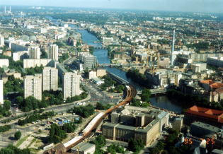 と彼を立身出世の呪縛から解き放ち、人間本来のやさしさに立ち返らせる懐かしい場所であった。私はマリエン教会に旧ベルリンの残像を垣間見た。マリエン教会のすぐ側に東側の政権のシンボルといわれたテレビ塔が聳えている。ここはベルリン観光の一つの目玉で長い行列が出来ている。そこからの展望は素晴らしく、ベルリンを一望できる。この展望台から今歩いて来た道を確認する。遥か彼方にティアガルテンの森が広がっている。ここで四方の写真を撮る。帰国後、写真と地図を付き合わせて、私たちの歩いたベルリンの足跡を確認することになる。未知の都市を知るにはまず高みからその都市を展望せよ。