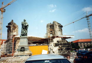 ところがツウィンガー宮殿は壮大でドイツ南部の小国ザクセン王国が思いがけなく豊かな国であったことを知らされる。ツウィンガー城の回廊をめぐているうちに中世の迷路にはまりこんだ心境になる。このバロック建築の傑作と言われる城はやはり第二次大戦でほぼ完全に破壊されたが、戦後たちまちに復元したという。私はヨーロッパの建築は石でできているから、残るのだと思っていたが、そうではなく彼らの文化遺跡に対する揺るぎない信頼、すざましい執着がそれを残して行くのだと思い知らされた。彼らはそれを何十年あるいは何百年かけて築き上げて行く。その持続力は私たちの想像を超える。それは完成された永遠を目指している。破壊とか消滅ということはあり得ない。これはやはり素材の問題ではない。意志の問題だ。持続への意志の問題である。考えてもみるがよい。日本の戦後の困窮時に破壊された文化遺産の一つでも復元したであろうか。阪神大震災で崩壊した文化遺産をどう復元しようというのか。ドイツ人の食うや食わずの時にも文化を忘れない執着は一体何に胚胎するのか。例えばマルチン・ルター像がある聖母教会は未だ廃墟のままで、やっと復元作業に取り掛かったところだ。かつてこの教会を作っていた煉瓦がその日に備えて集められ保存されている。かつてバブルの日、ある日本企業が再建の資金援助を申し出たそうだが、市民の拠出金で再建をしたいからと断られたという。文化は市民のものなのだ。日本の市民はまだ文化まで手が届いていない。