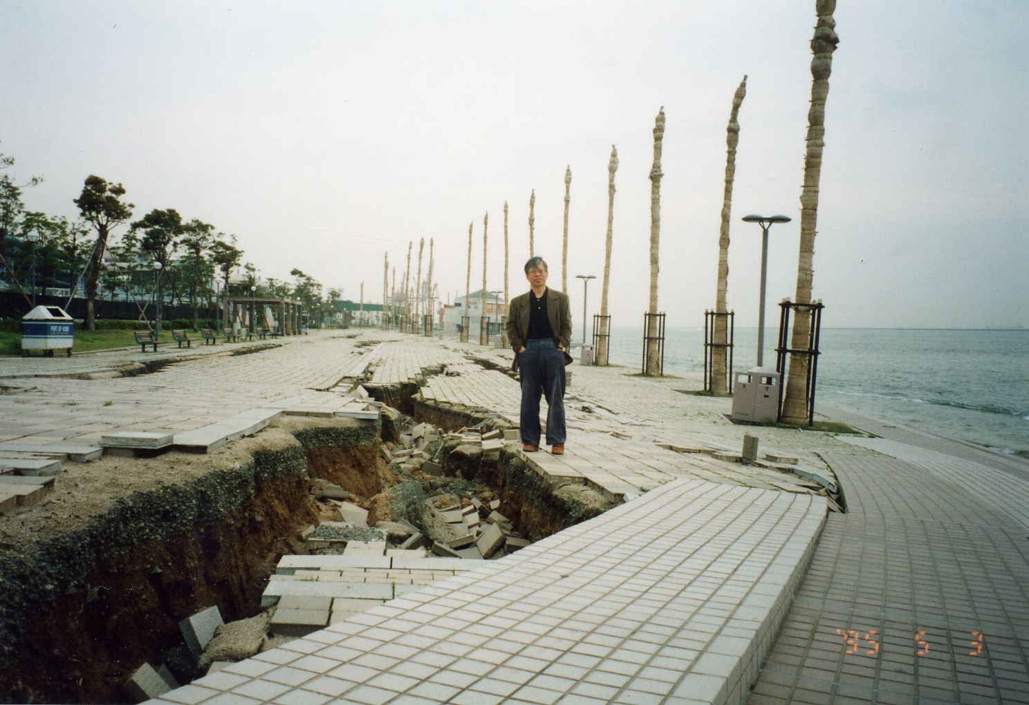 14、神戸の崩壊(震災で亀裂ができた六甲アイランド海岸)