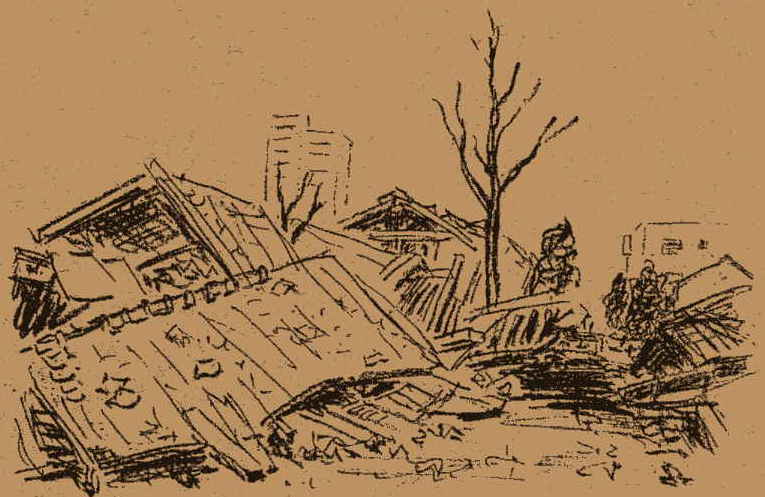 2月19日には元町から三宮・新神戸へ歩き、2月25日には呉の親戚の法事で中休みをしたものの、3月4日には住吉の恩師宅を見舞い、学生時代から長らく住んでいた御影周辺を歩いてみた。見れば見るほど神戸の傷跡は深くて果てしなく広がっていた。傷はどこも鋭く生々しく衝撃的で、私は「ワァー」とか「ヒドイ」とかいう嘆声を上げているのであった。私は一つの都市のこような壊滅的惨状に一体何を見ているのであろうか。例えばかつて労演会員として演劇を見続けた国際会館の痛ましい亀裂に私は何を見ていたのであろうか。人間をさえ風景として見ようとしていた私にはそれはやはり風景に過ぎないのであろうか。それとも亀裂し崩壊する風景の向こうから人間が現れるとでも言うのであろうか。ガレキの中の花束にこめられた死者への祈りの心が分かるか、営々と築いた家を一瞬のうちに失った人の無念の心が分かるかと問われれば、無論私には分からないと答えるしかない。私が見ていたのは都市の崩壊の背後から現れる自然の素顔であり、人間を見舞う運命の姿である。