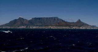 ケープタウンに近づくと、波の彼方から幾何学の図形のようなものが競り上がってくる。デッキの人波から嘆声がもれる。空を1直線に絶ち切った台形の山容がひたひたと迫ってくる。テーブルマウンティンの巨大でシンプルな構図の美しさは圧倒的だ。その下に細長い帯のように広がるケープタウンの白い街はこの世ならぬ清楚なたたずまいをしていた。褐色の岩肌を露出させて覆い被さる山を、街は白いビルを聳立させてきっぱりと押し返していた。山と街のコントラストが見事であった。私のカメラの中で、ケープタウンは海鳥が飛び交う港を前景にして額縁に入れられた幻想画のような街になった。このクルーズのベストショットであった。