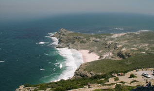 ケープタウンからバスで喜望峰観光に出かける。ケープ半島は広大な自然保護区に指定されていて、岩肌の露出した荒々しい草原が元の姿のまま保存されている。ダチョウ、ヒヒ、シカが潅木の茂みの間に見え隠れする。
