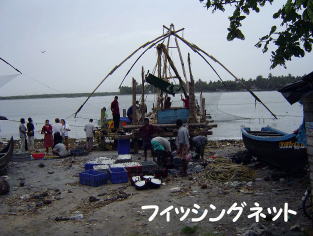 二〇〇三年六月一五日神戸港を出航、翌々日沖縄を出てから台風に巻き込まれて、船は大揺れに揺れた。インド洋はずっと悪天候であった。 コーチンも雨の中の観光となった。南インドのケーララ州コーチンは明るく開けた海洋都市である。雨にけぶる海辺でフィッシィングネットという手動の魚採り装置を見た。大勢で網を引き揚げるのだが、大きな網の割りには少量の魚しか取れず、インド的悠長さとでも言う他なかった。